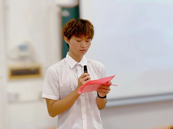 优秀学生代表江海潮上台发表讲话,表达了对工作室建设的期待,并对学院的未来开展寄予了美好的祝愿。江海潮同学表示,他将持续承担起个人责任,以勤勉的工作态度,不断提升工作室的工作质量和效率,同时大力弘扬核心精神,发挥自身榜样作用,有助于工作室创造更大的辉煌。最后,江海潮同学表示将不遗余力地为学院的开展贡献自己的力量。